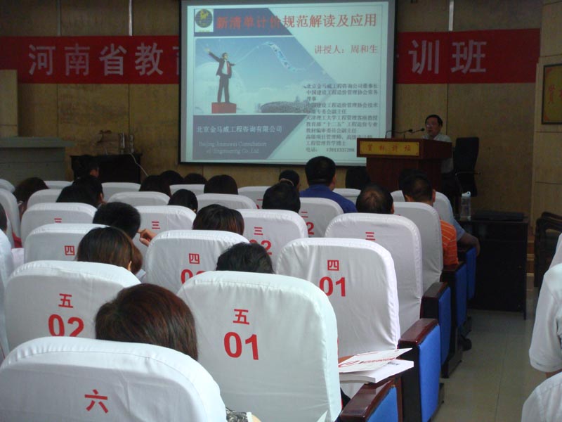 2010年5月,周和生董事長在信陽“ 河南省教育系統審計干部培訓班”上講授“新清單計價規范解讀及運用”和“新清單模式下建設項目管理審計”。
